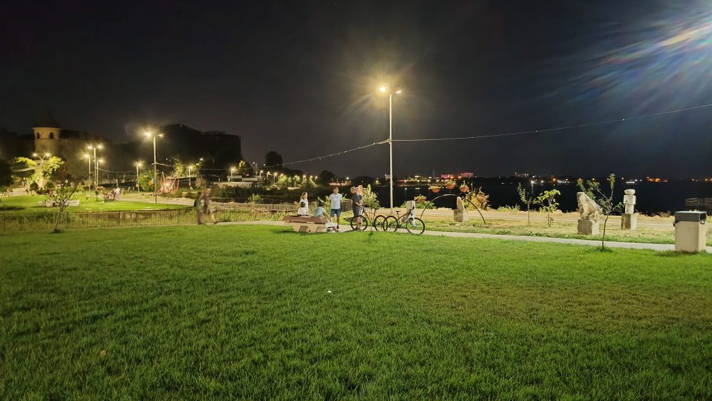 Seara, faleza își schimbă tonul, păstrând însă aceeași atmosferă de calm și siguranță. Iluminată discret, devine locul ideal pentru plimbări nocturne, în orice anotimp. Aici te simți în siguranță în orice moment al zilei, iar briza lacului și lumina felinarelor creează un farmec aparte, care te face să revii mereu.